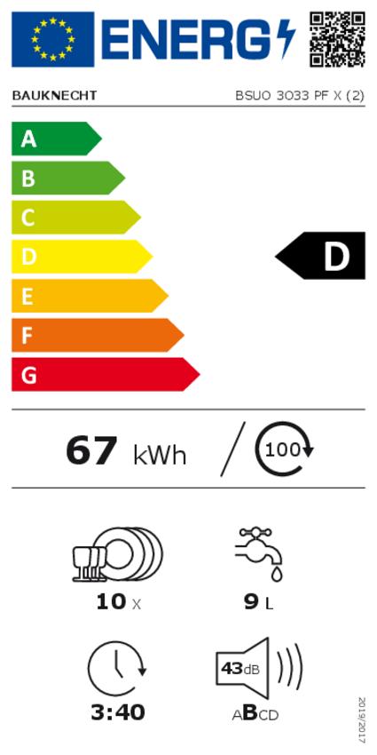 - Energieverbrauch des eco-Programms pro 100 Betriebszyklen: 67 kWh Strom
