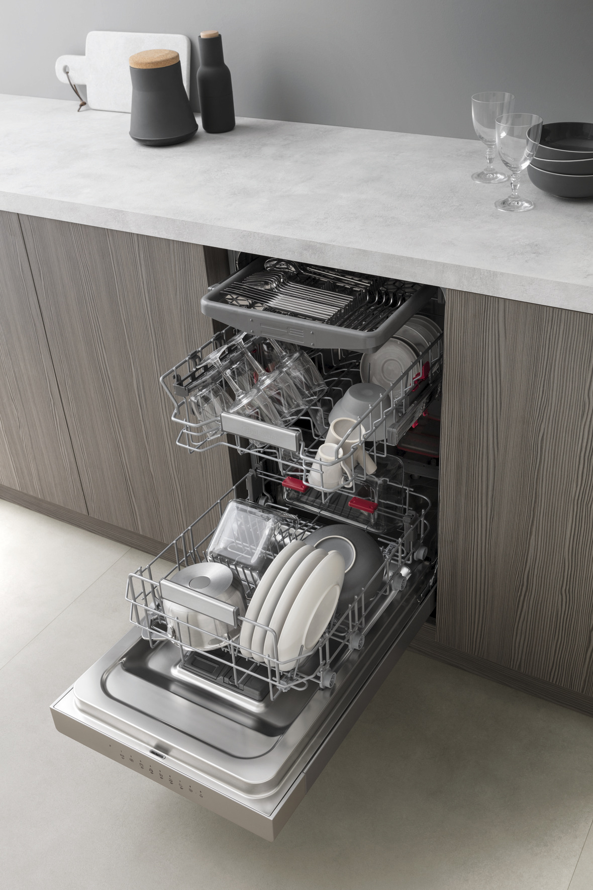 Dank intelligenter Innenraumgestaltung kann auf vielfältige Art beladen werden. Egal welches Geschirr, wie voll die Beladung, wie stark die Verschmutzung ist: Sie erhalten immer perfekte Ergebnisse – und das bei optimalem Wasser- und Energieverbrauch.