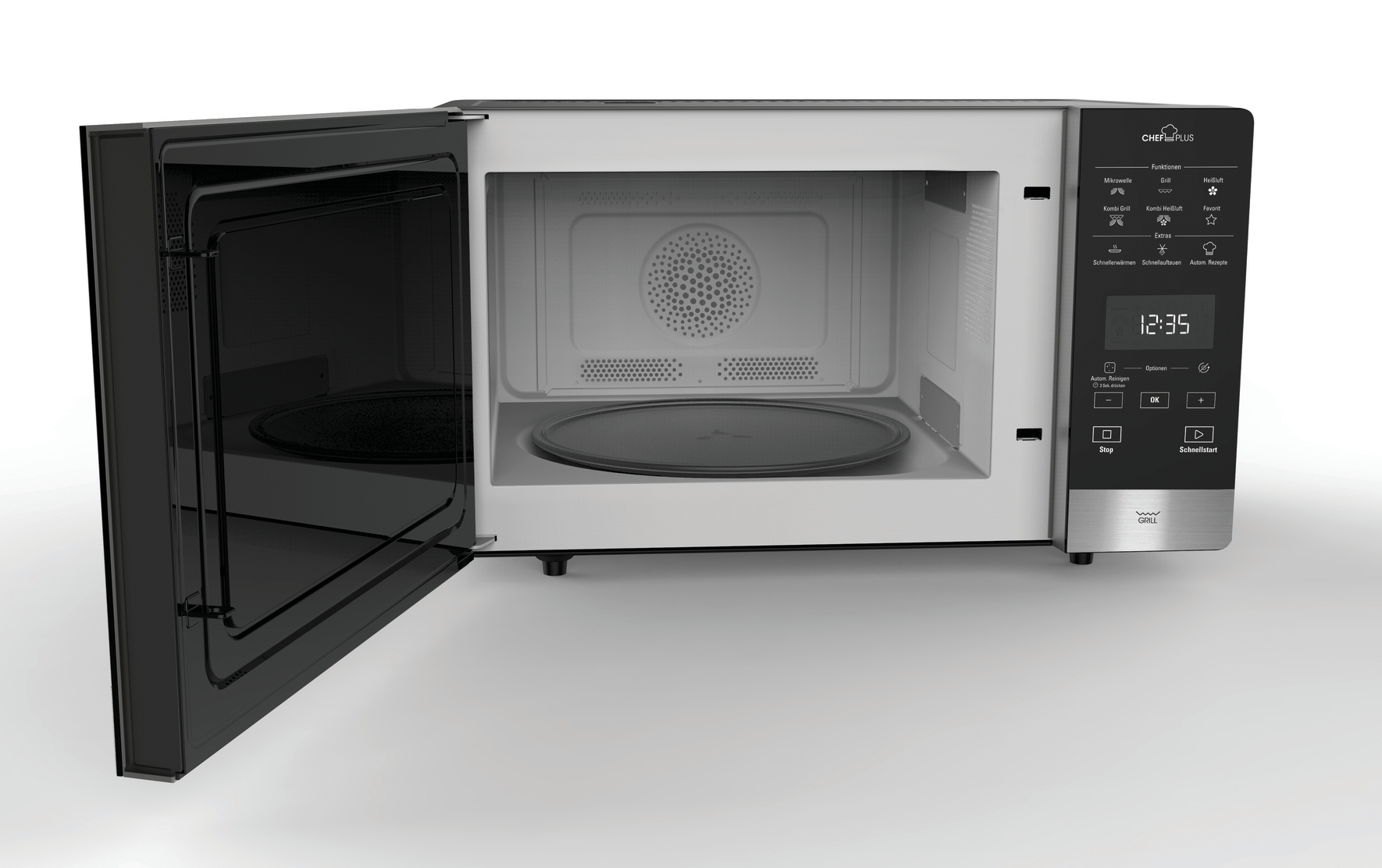 - Abschaltbarer Glasdrehteller 28 cm Ø